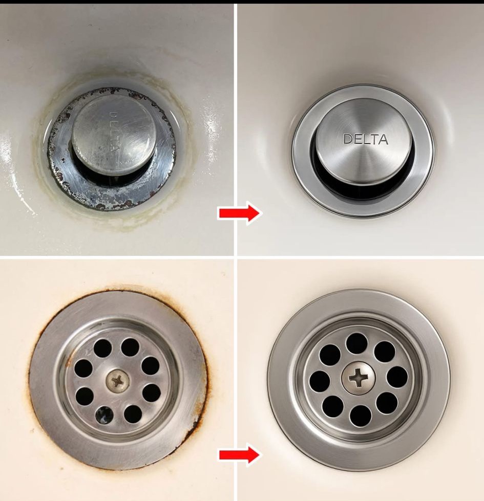 brudny, zardzewiały, obrzydliwy odpływ, który nagle wygląda jak nowy.